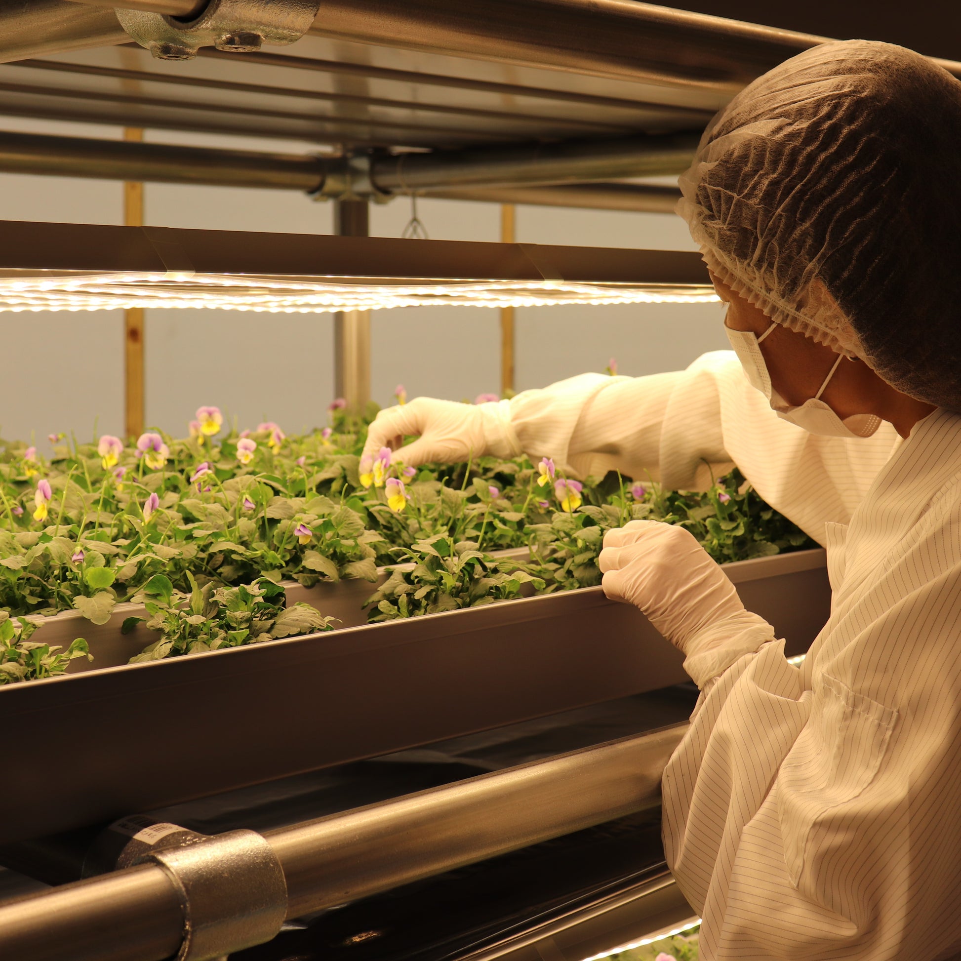 - 植物工場で栽培した食用花をお届けします。管理された室内で、水耕栽培により育てているため、土や砂の混入の心配がありません。