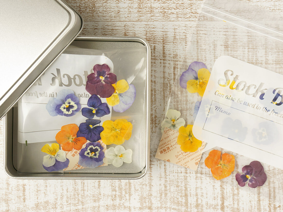 - 特別に栽培したエディブルフラワー(食用花)を押花に加工した、「食べるおしばな」です。
